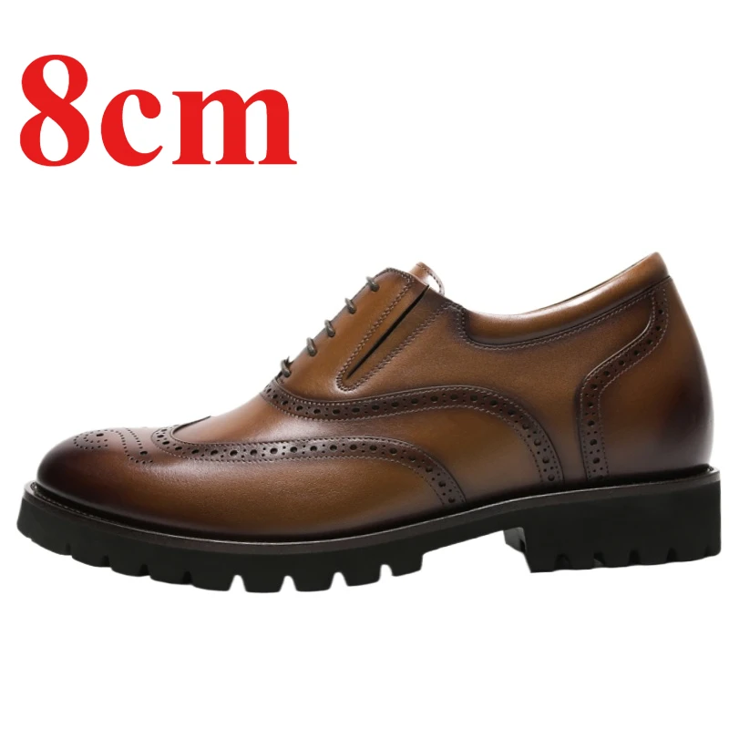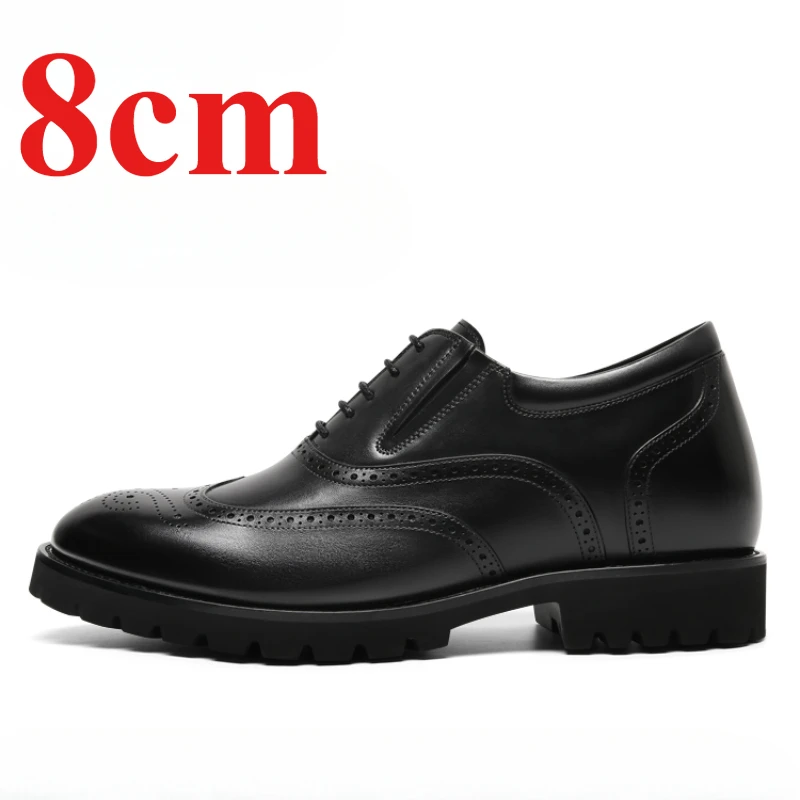 • British Brock Oxford Shoes Men’s Invisible Height Increased 8cm Genuine Leather Casual Business Thick Platform Men’s Dress Shoes