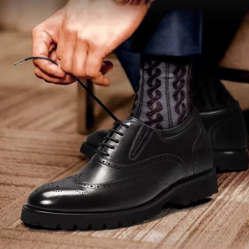 British Brock Oxford Shoes Men’s Invisible Height Increased 8cm Genuine Leather Casual Business Thick Platform Men’s Dress Shoes