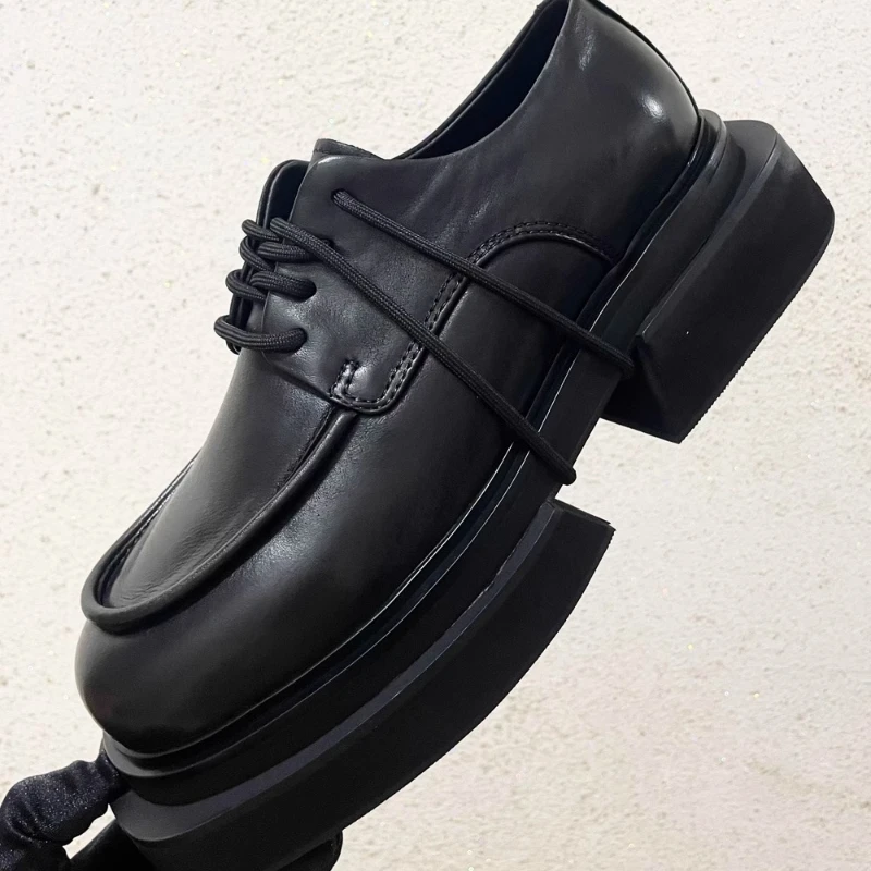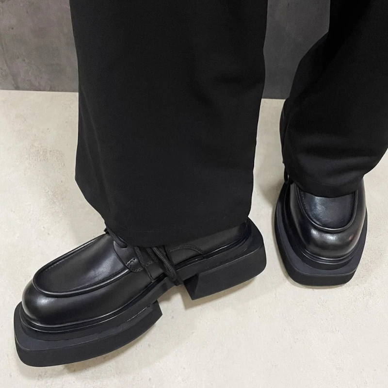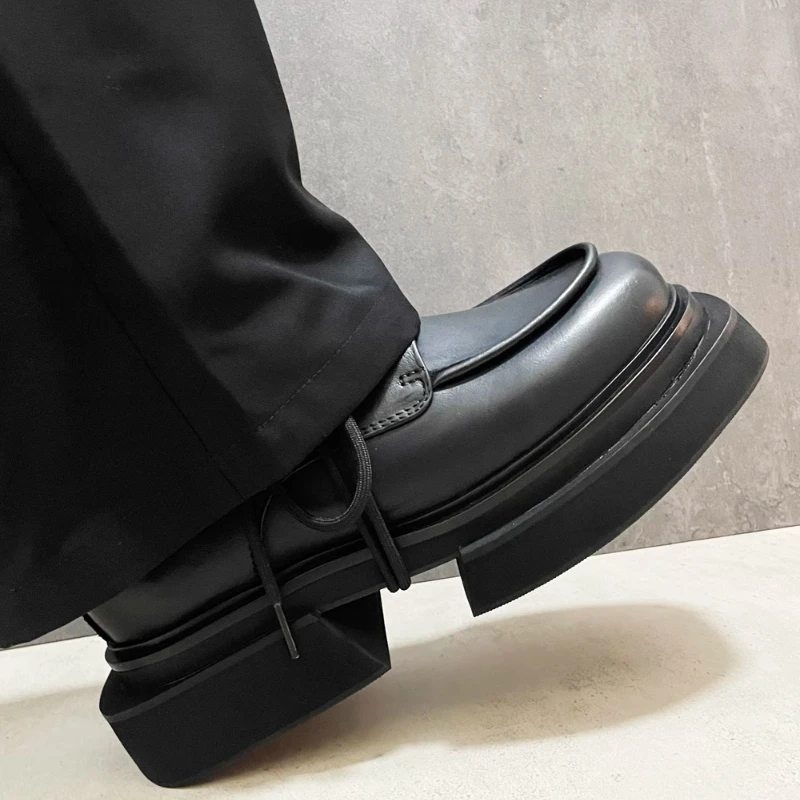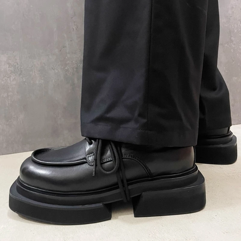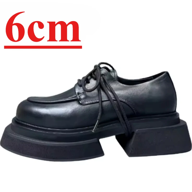 • British Fashiona Design Thick Soled Shoes for Men’s Increased 6cm Genuine Leather Heightening Shoes Wide Version Derby Shoes Man