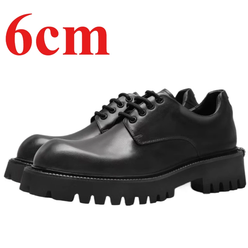 • British Men’s Dress Shoes Increased 6cm Casual Thick Platform Derby Shoes for Men Genuine Leather Groomsman Wedding Oxford Shoes