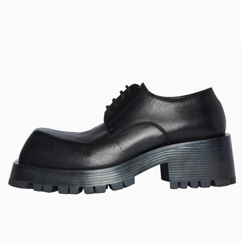 • European/American Modeling Design Men’s Dress Shoes 7cm Dafang Head Derby Shoes for Men Genuine Leather Casual Thick Soled Shoes