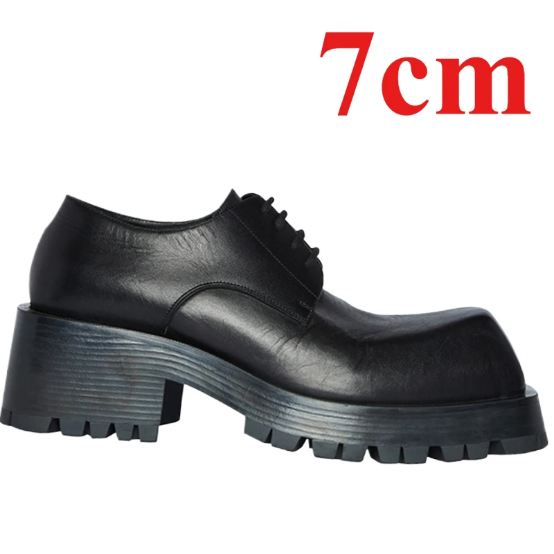 European/American Modeling Design Men’s Dress Shoes 7cm Dafang Head Derby Shoes for Men Genuine Leather Casual Thick Soled Shoes