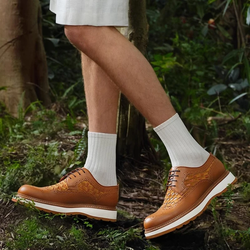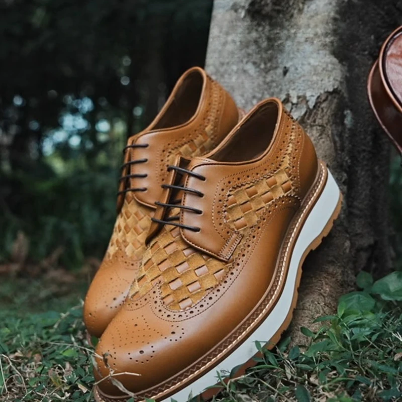 • Genuine Leather Block Carving Derby Shoes for Mens Strap Soft Bottom British Style Luxury Casual Leather Shoes Men’s Dress Shoes