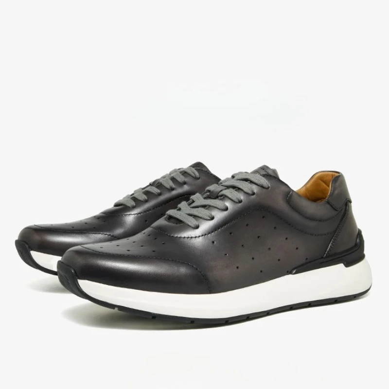 • Genuine Leather Light Thick Soled Height Increasing Shoes for Men’s Comfortable Sports Shoes Fashion Breathable Casual Sneakers