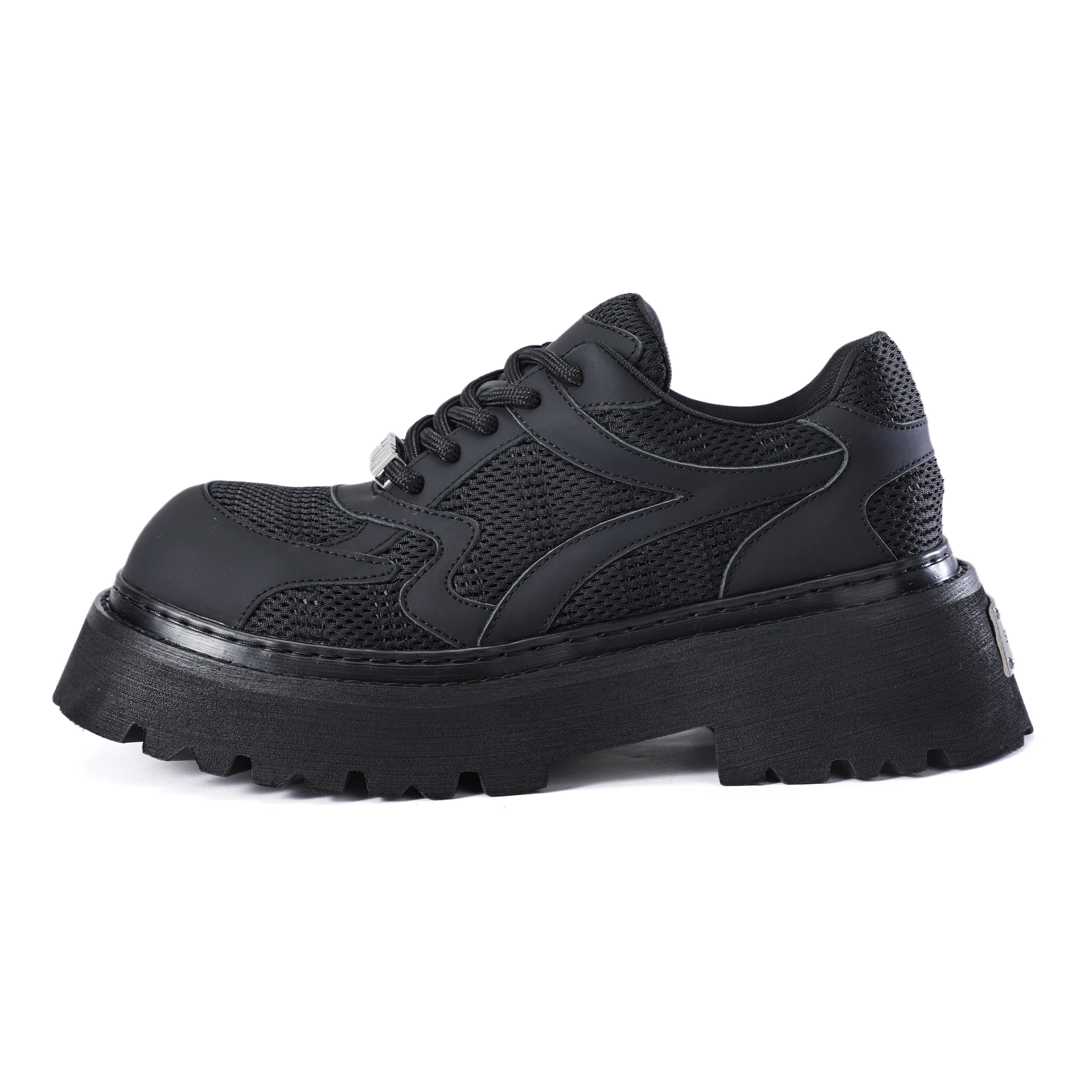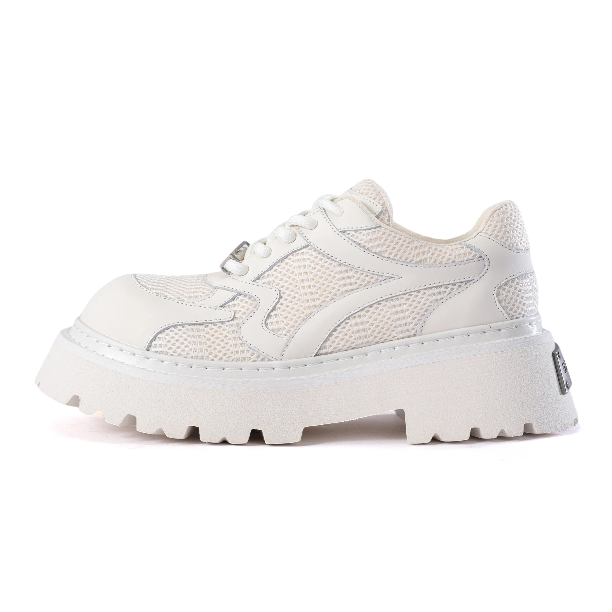 Genuine Leather/Mesh Casual Derby Shoes for Men’s Summer Anti Odor Hollow Out Breathable Lightweight Thick Sole Increasing Shoes