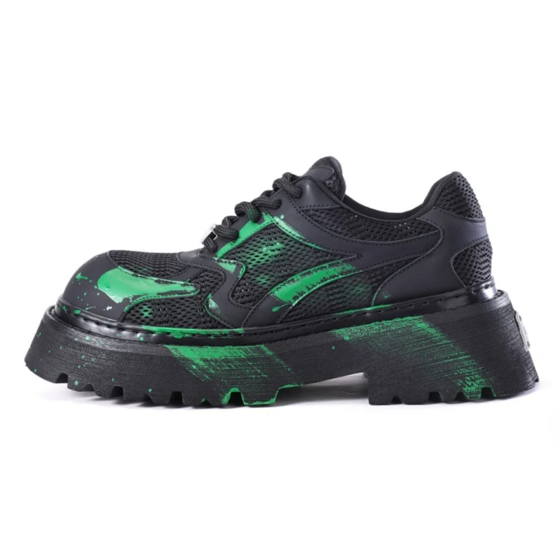 • Genuine Leather/Mesh Casual Derby Shoes for Men’s Summer Anti Odor Hollow Out Breathable Lightweight Thick Sole Increasing Shoes