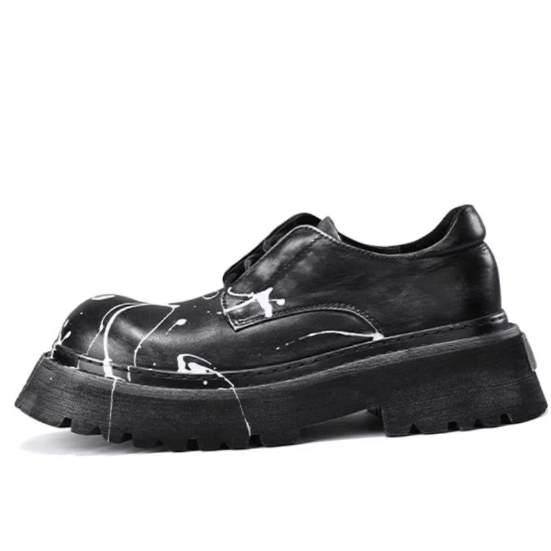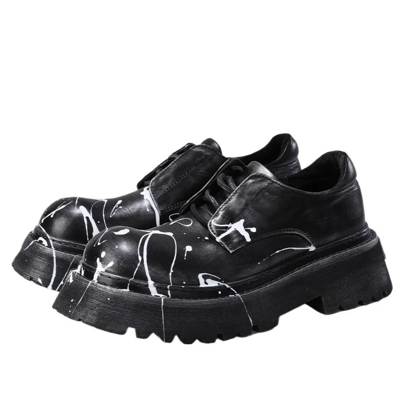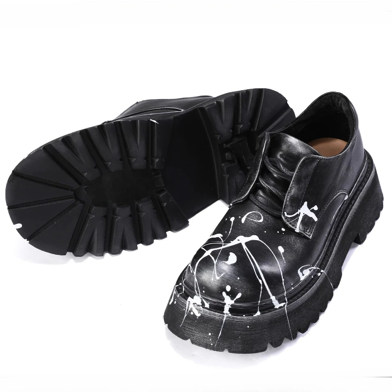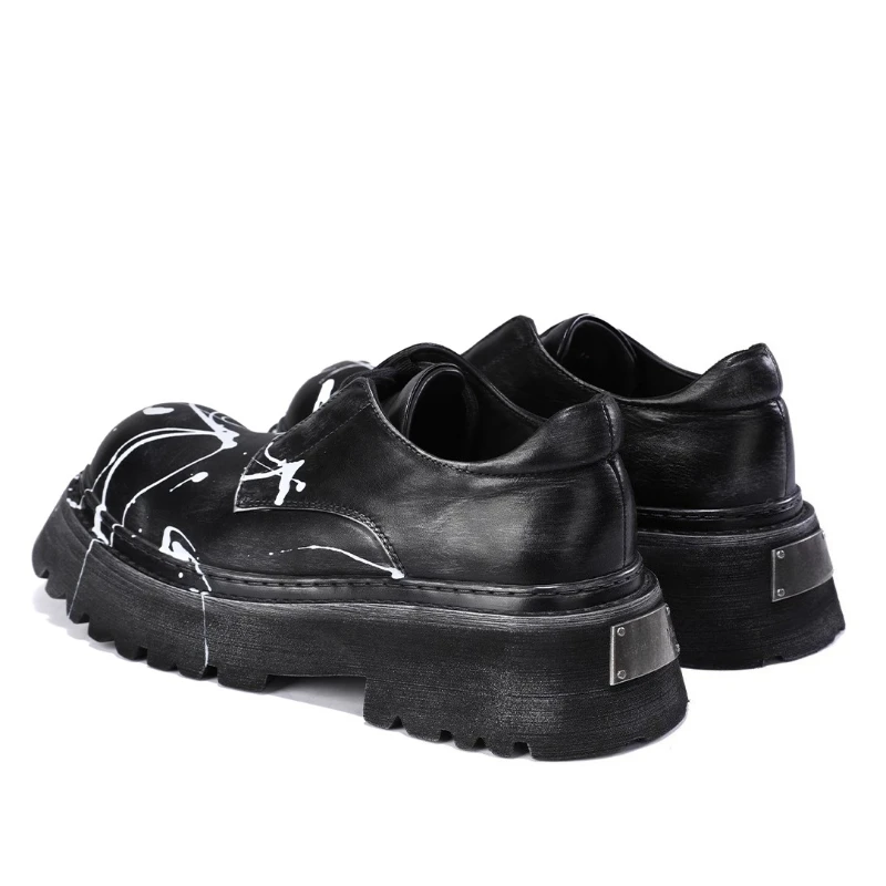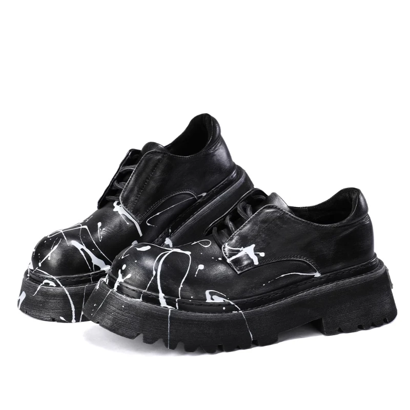 • Hand Drawn Graffiti Derby Shoes Men Casual Thick Bottom Height Increasing Men’s Dress Shoes Genuine Leather Wedding Oxford Shoes