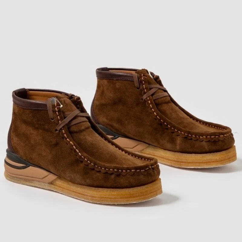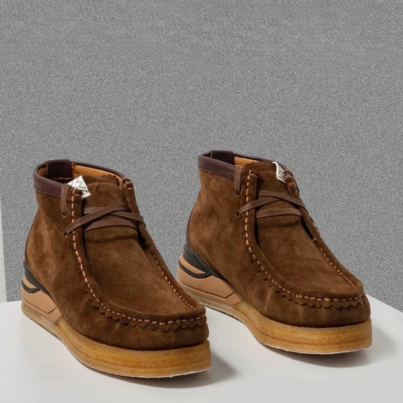 Handmade Frosted Calf Leather Shoes for Men’s Rubber Soft Sole Casual Shoes Genuine Leather Retro Cork Insole Kangaroo Shoes Man