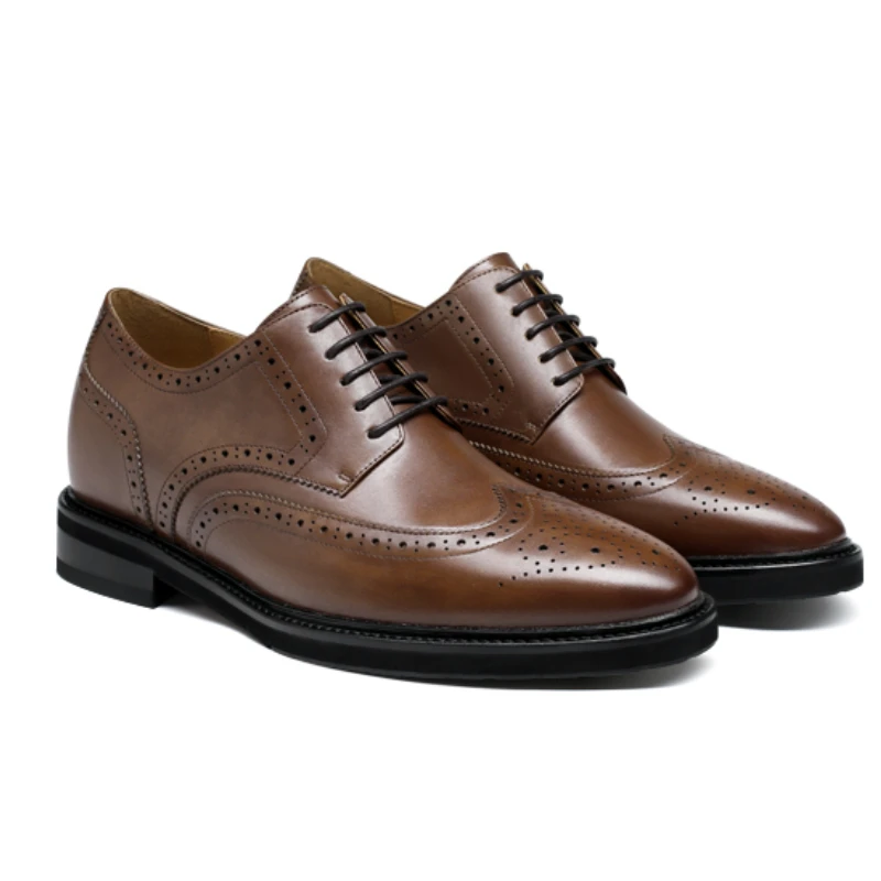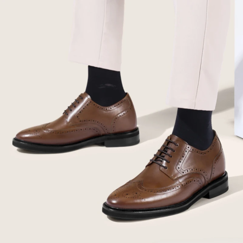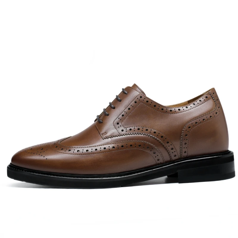 • Height Increasing Derby for Shoes Men’s 7cm Wedding Invisible Elevator Shoes Genuine Leather Carving Business Men’s Dress Shoes