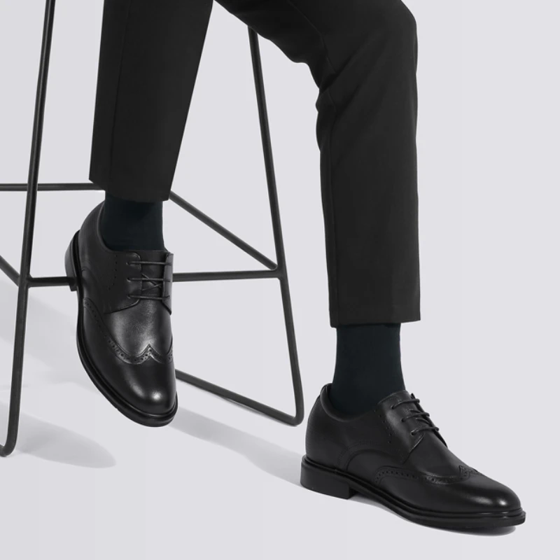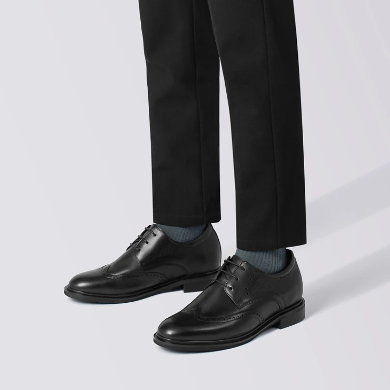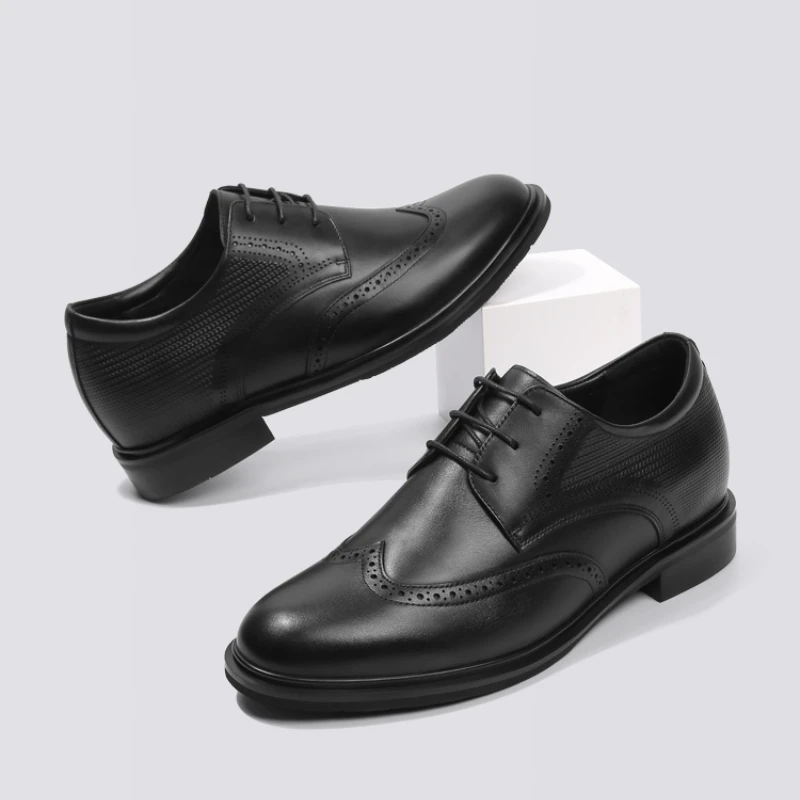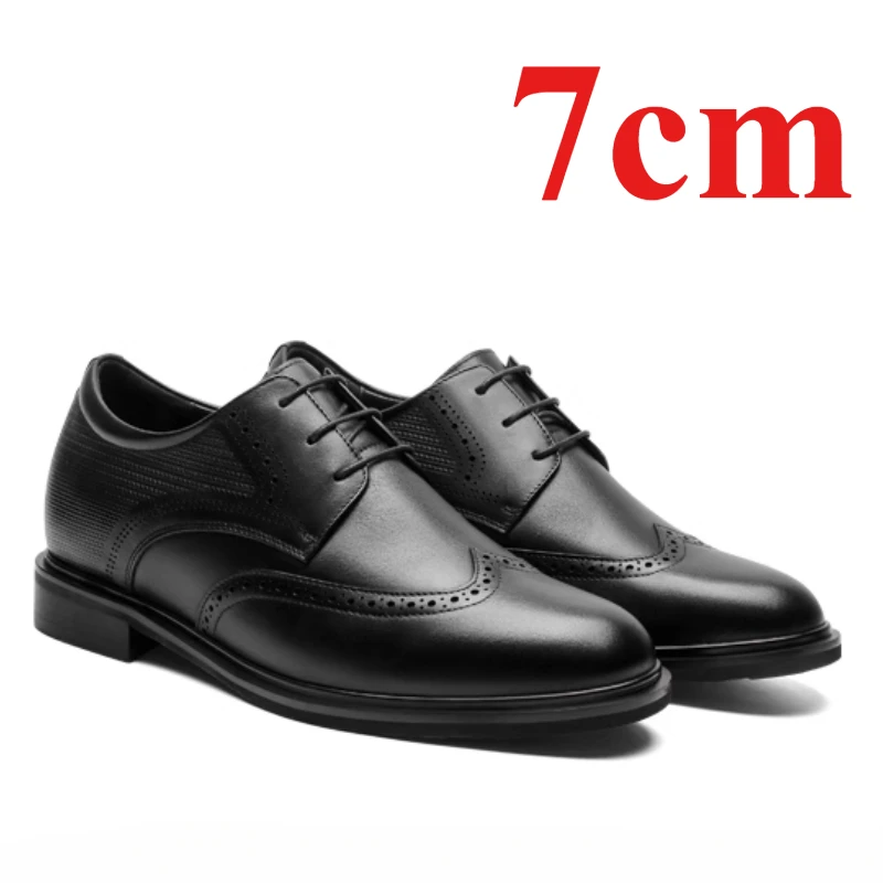 • Height-increasing Derby Shoes Men’s Dress Shoes Invisible Increased 7cm Genuine Leather Business Elevated Carved Leather Shoes