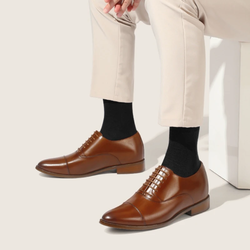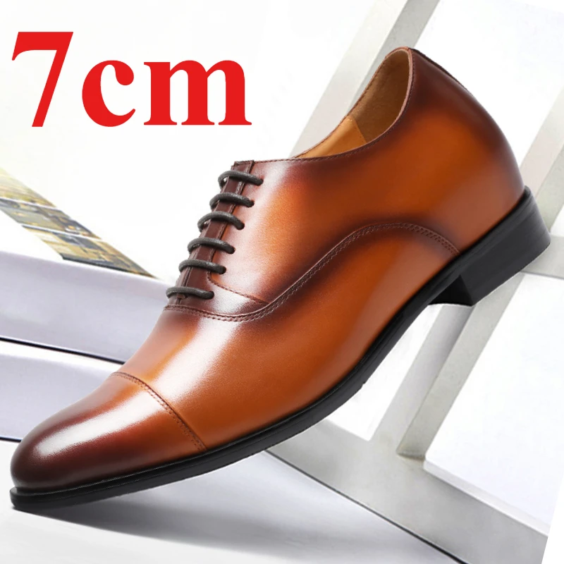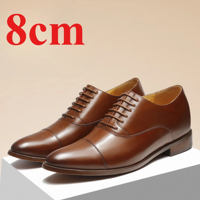 • Men’s Dress Shoes Retro Polished Pointed Toe Derby Shoes Business 7cm 8cm Increased Genuine Leather Groom’s Wedding Oxford Shoes