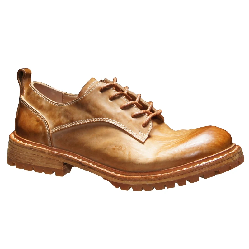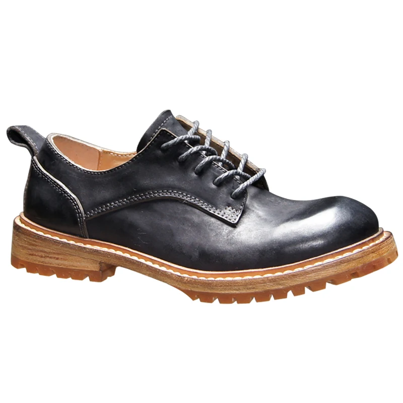 Tough Guy Wind Derby Shoes for Men’s High-end Horse Hip Leather Handmade Strip Goodyear Retro Business Casual Men’s Dress Shoes
